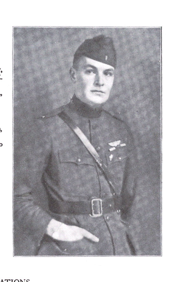 During World War I served in the French Aviation: enlisted July 10, 1917. Aviation Schools: July 19 to December 24, 1917, Avord, Juvisy, Pau. G.D.E. Breveted: October 12, 1917 {Caudron}. at the Front: Escadrille Spad 152, December 23, 1917, to February 12, 1918. Final rank; Sergeant.